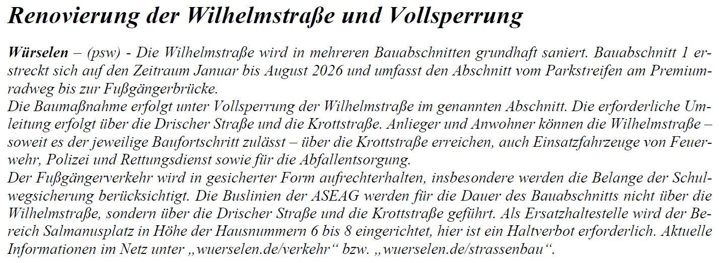 Hier findet sich das Aktuelle aus der Düvelstadt und dem restlichen Westzipfel: